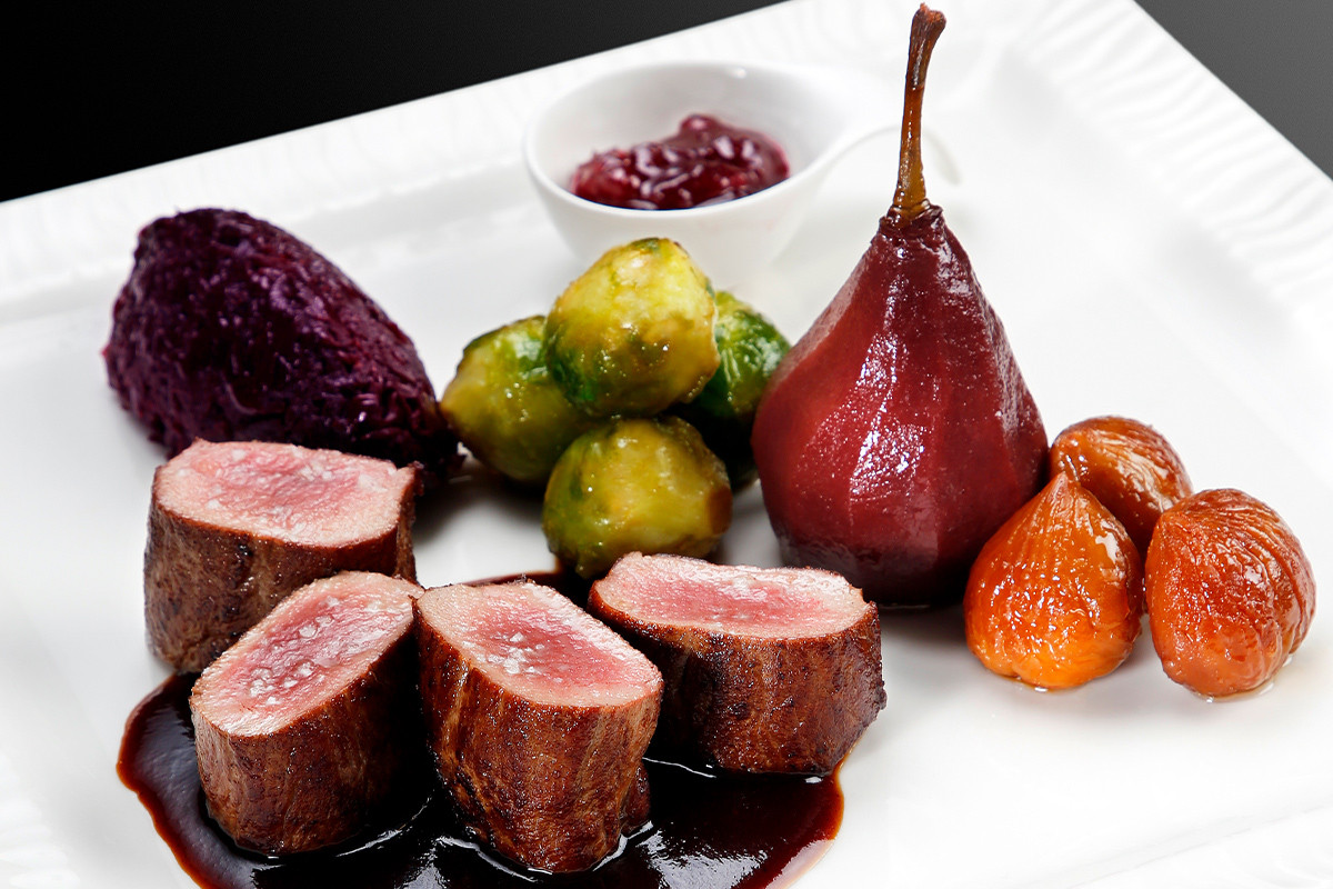 Joues de porc confites à la sauce Vigneronne, spätzlis Maison et légumes sautés du jour